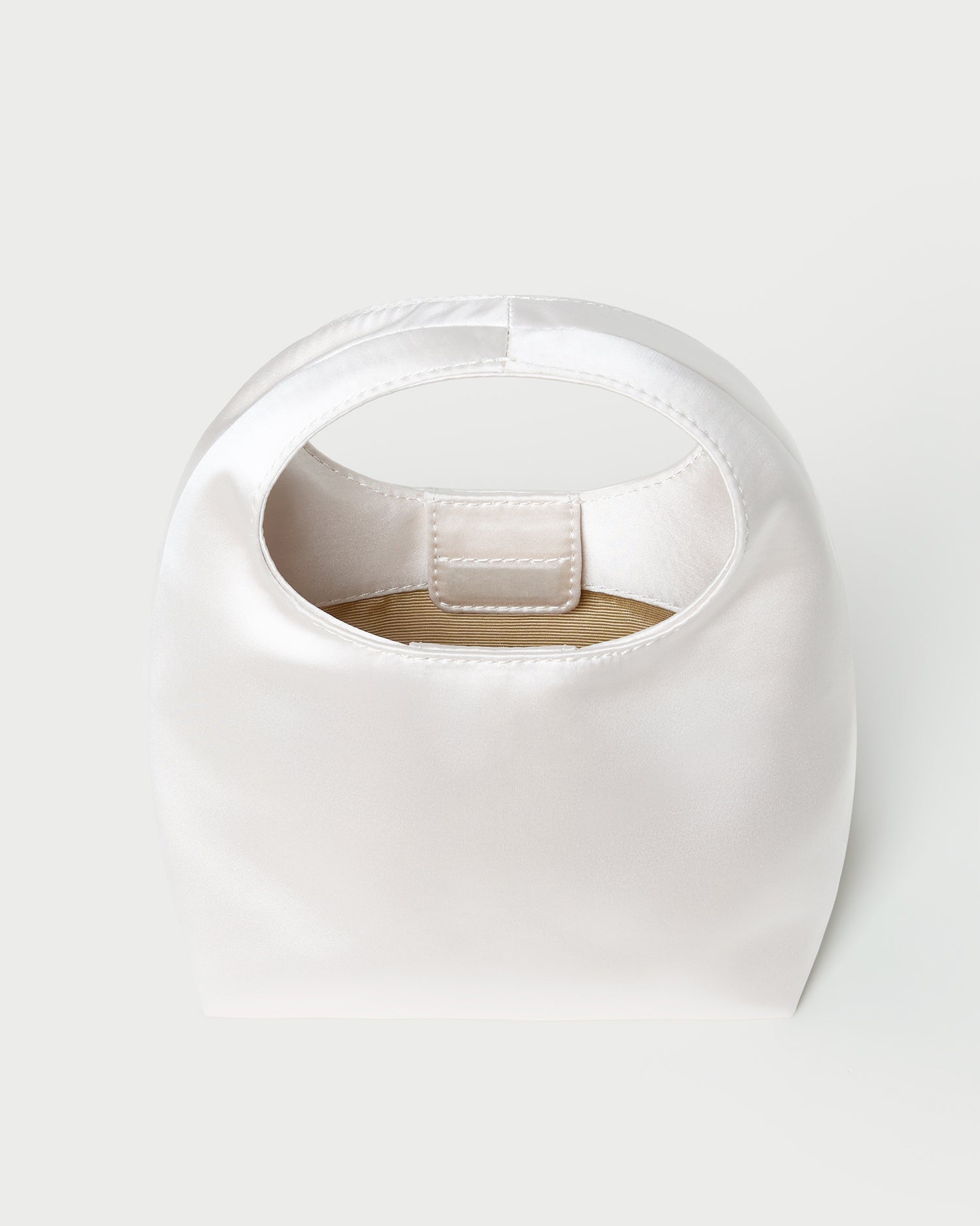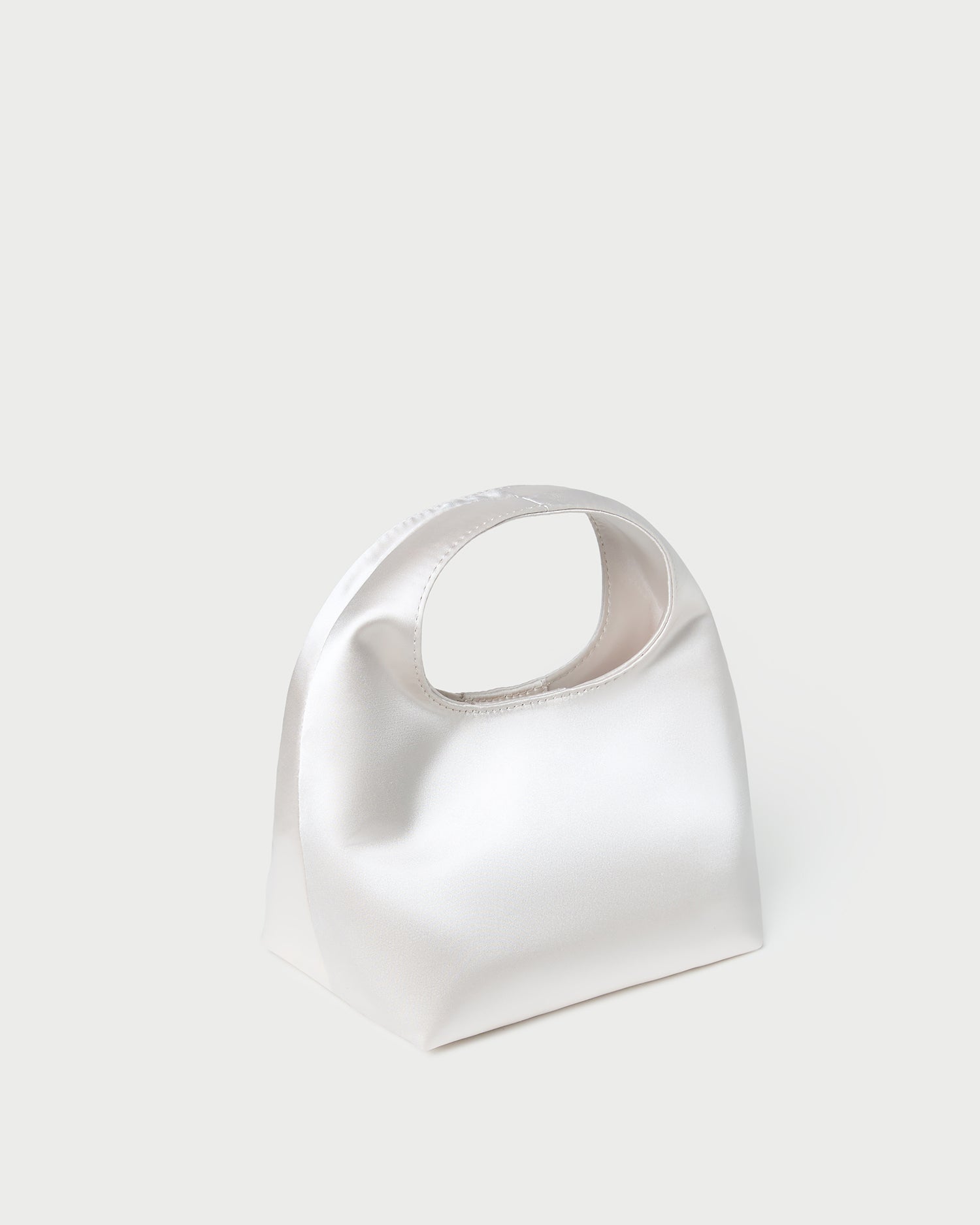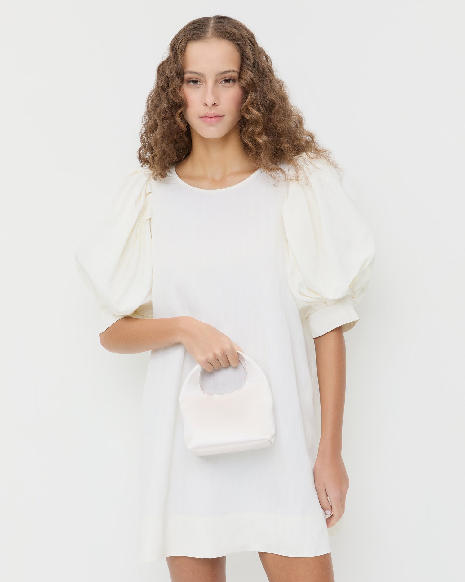 Kenzie Cream Satin Mini Bag in cream satin and Willy Mini Dress in cream moiré.