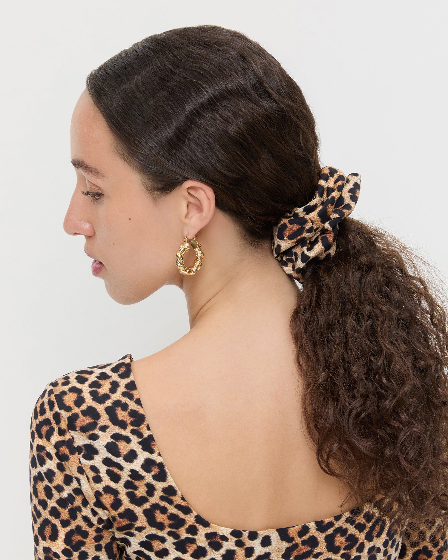 Oversized scrunchie in leopard jersey.