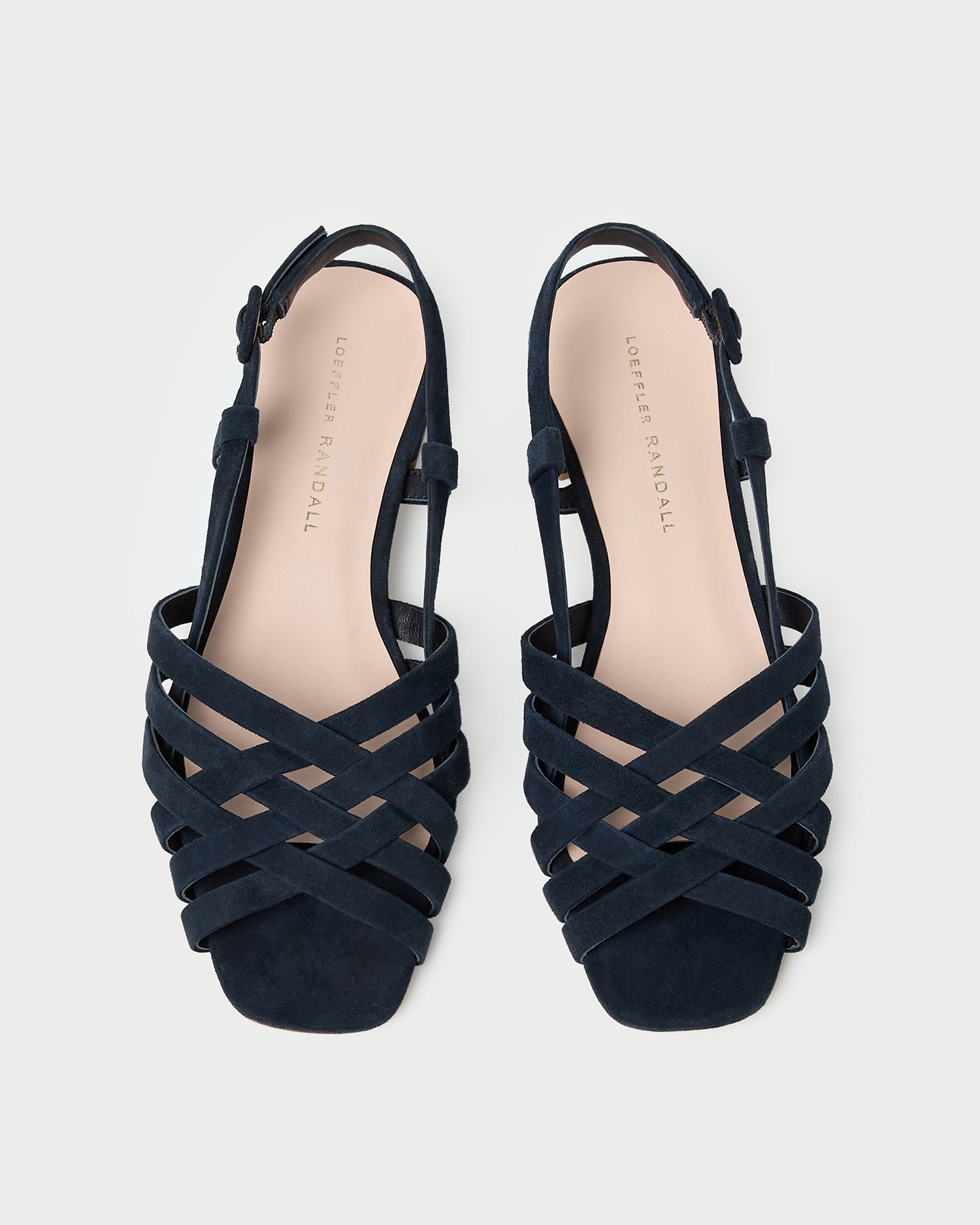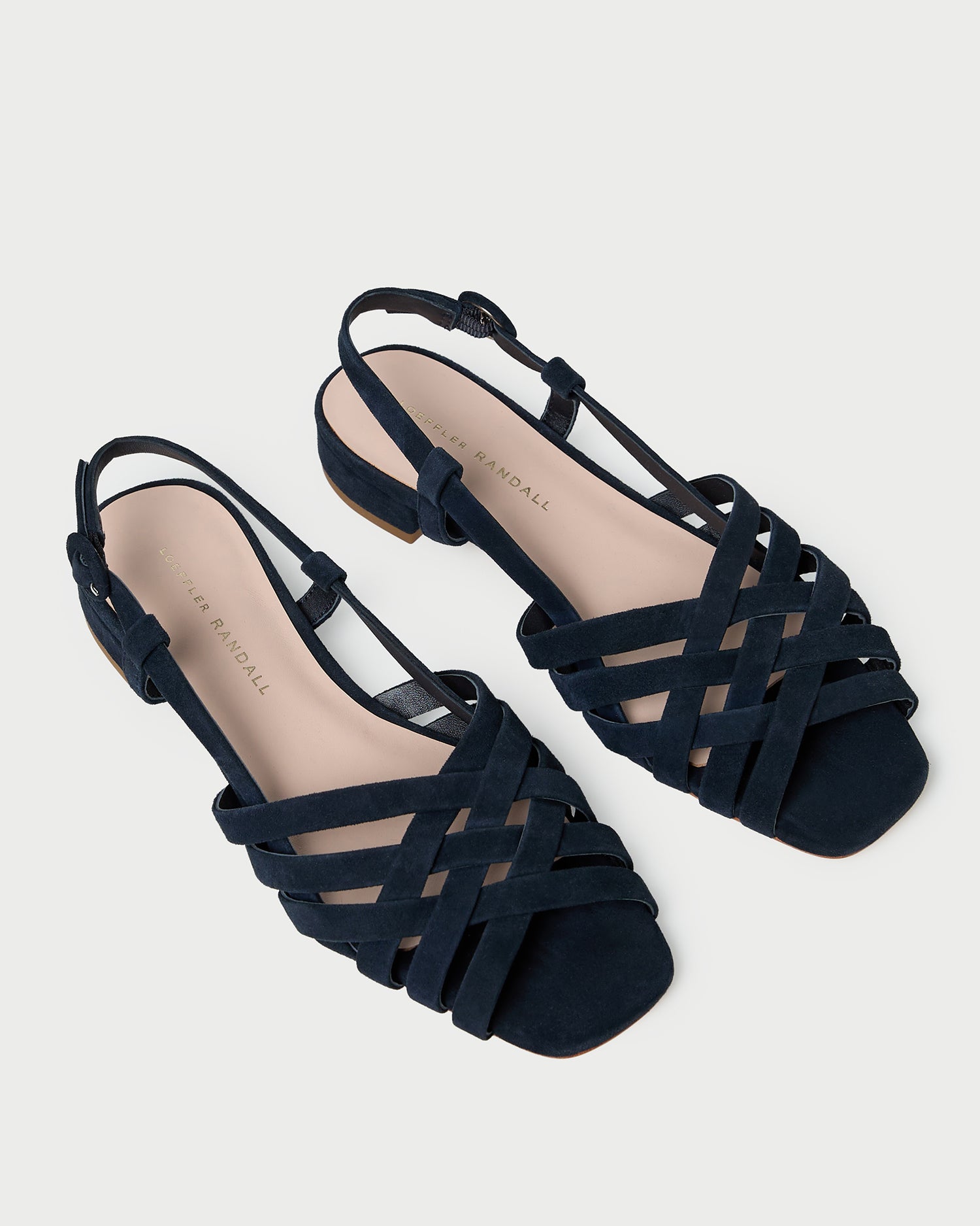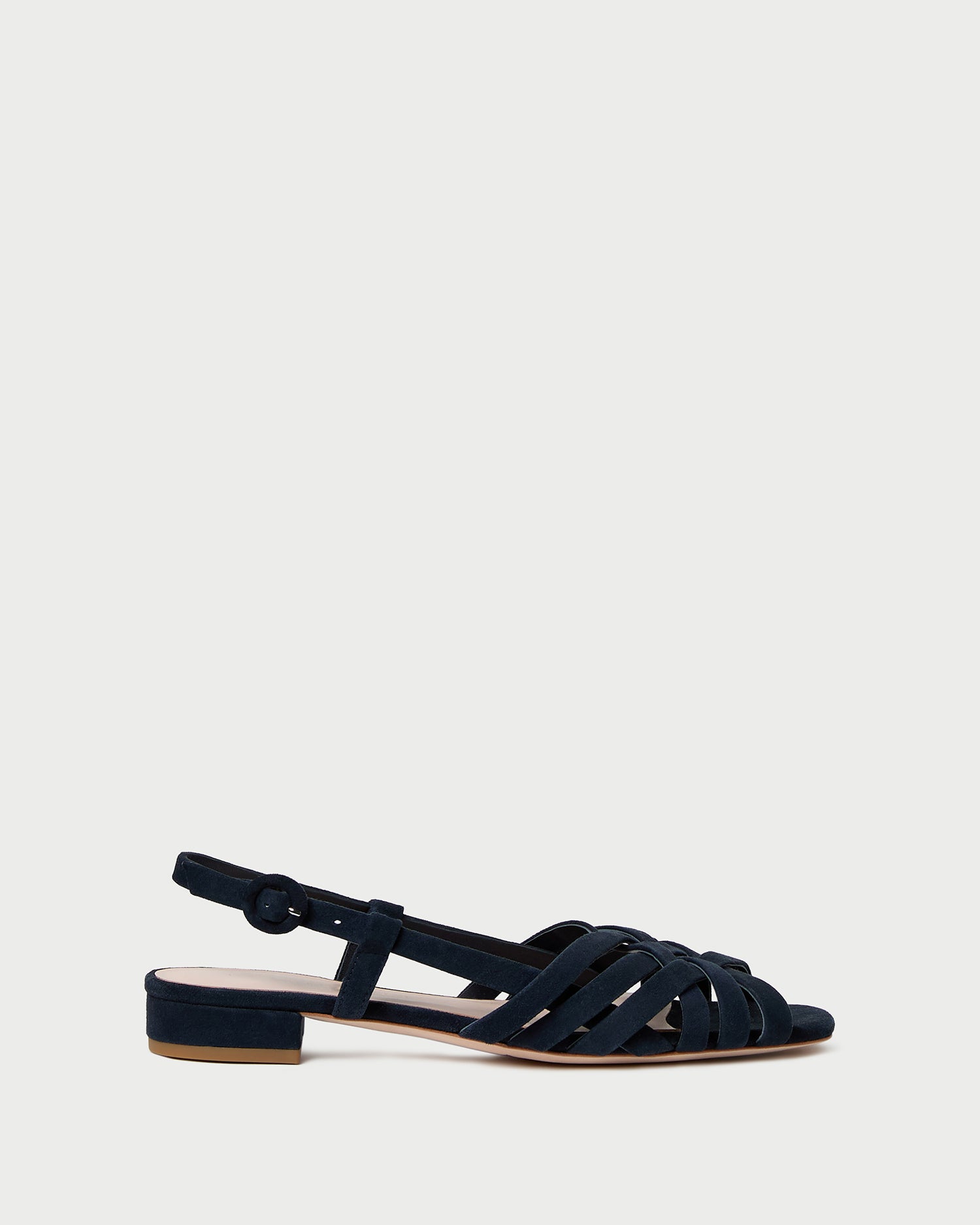 Shelly Navy Suede Flat Sandal in navy blue suede.