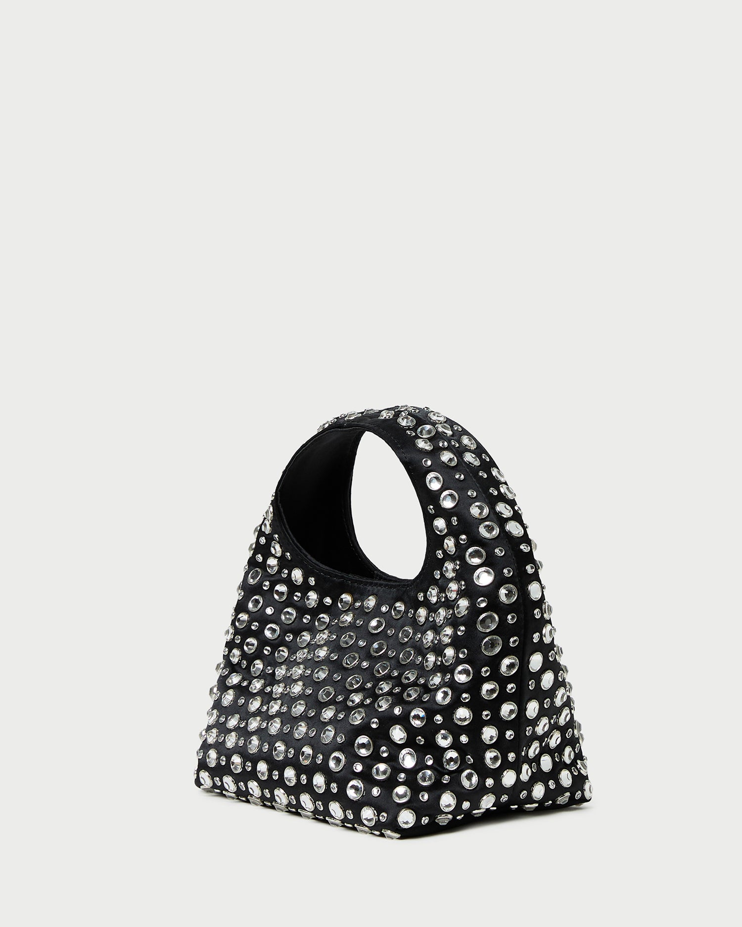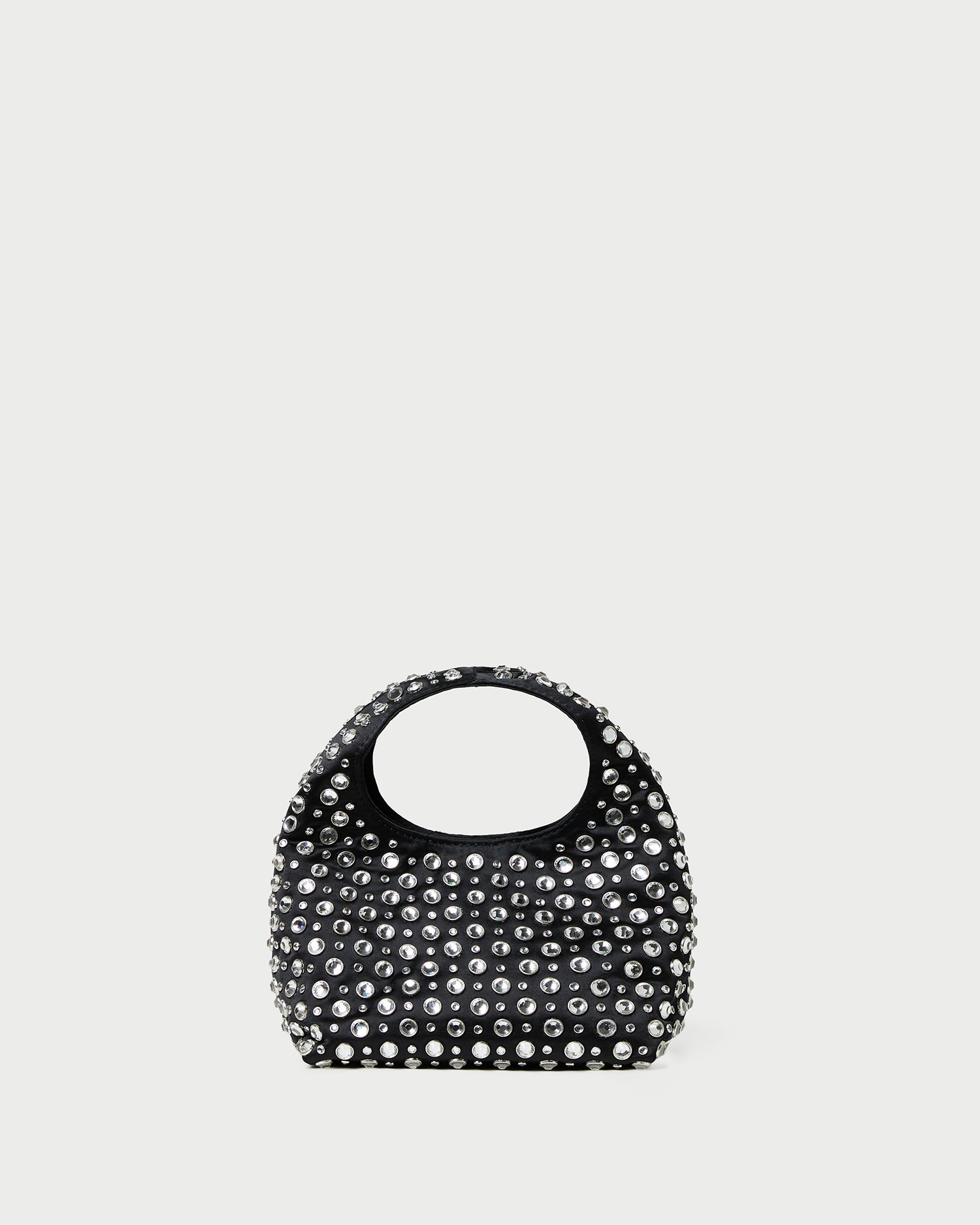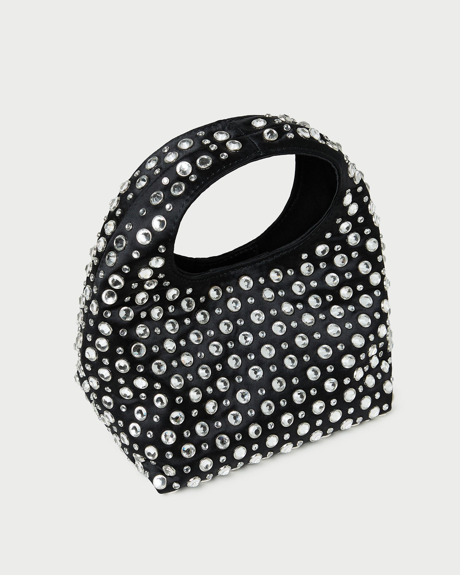 Kenzie Black/Crystal Mini Bag in black satin with crystal accents.