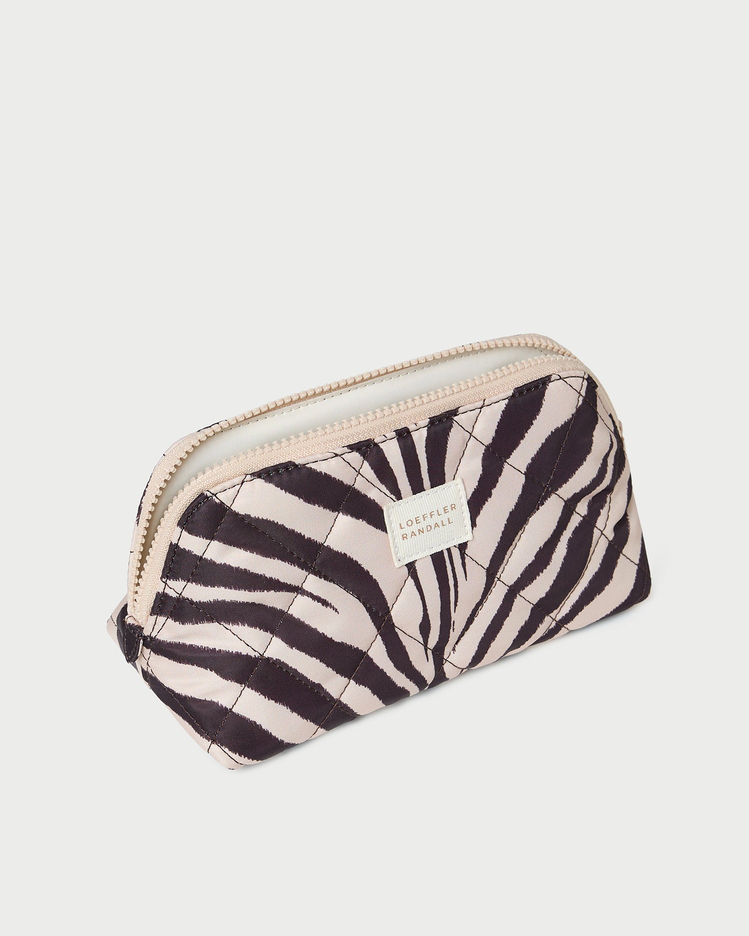 Frances Zebra Cosmetic Pouch in zebra print nylon, Dina Zebra Travel in zebra print nylon, and Georgette Zebra Mini Cosmetic Pouch in zebra print nylon.