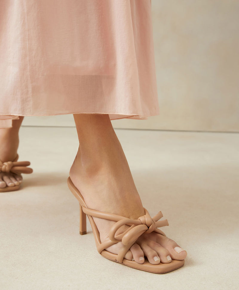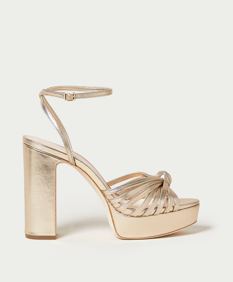 Summer reaches high heights with a brand new platform heel: our Rivka. The knotted, pieced mignon upper in metallic leather is a chic update to one of our favorite classic details.