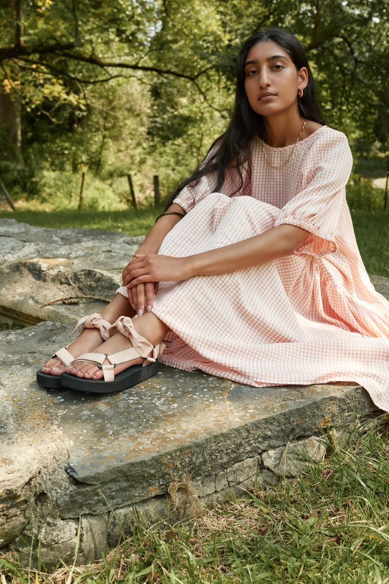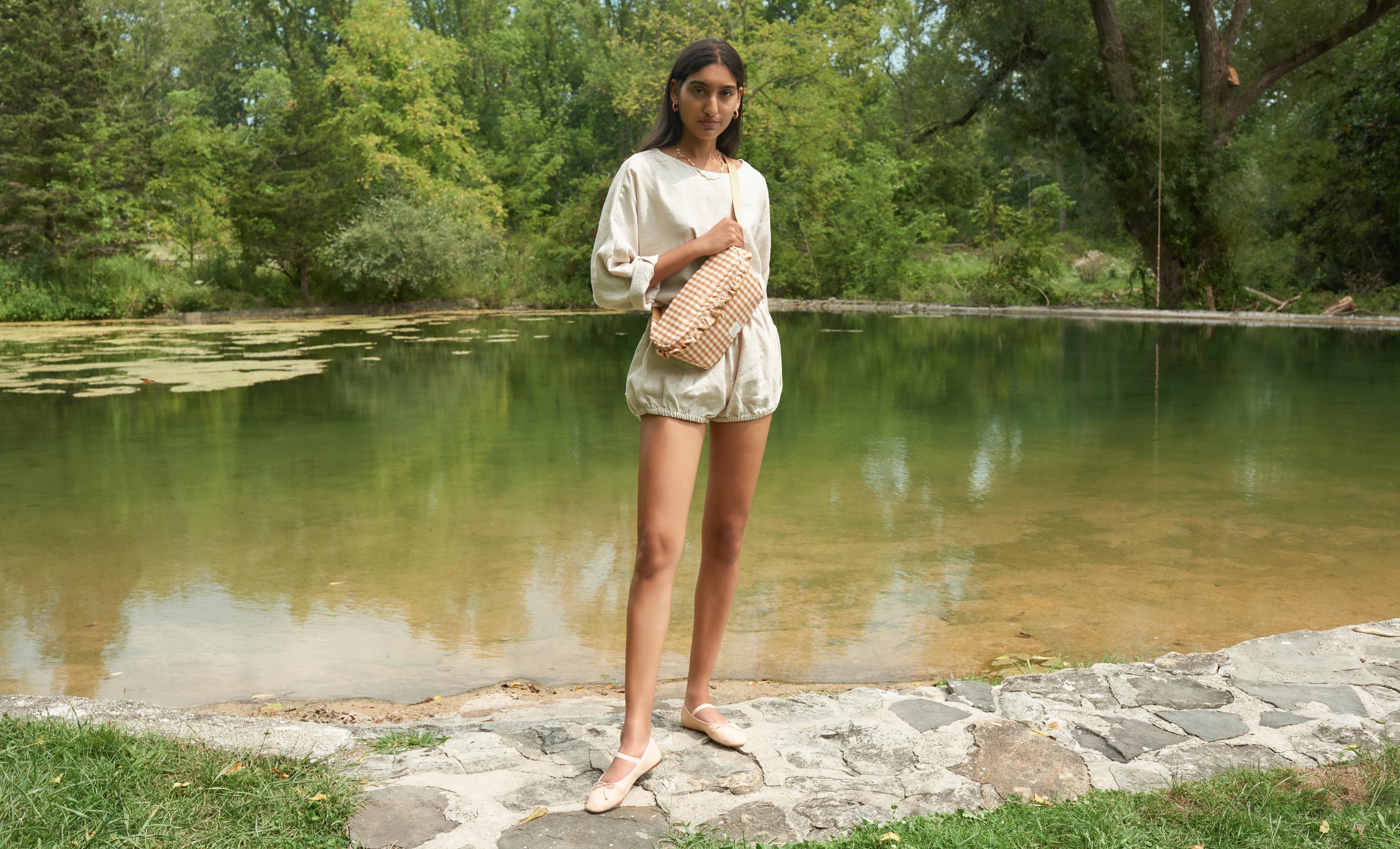 Welcome to our Spring '21 collection, a reflection on the pieces we want to wear most right now, mixing sporty and delicate details. Our color palette is a mix of beautiful muted tones like clay, amber, and honey, plus fresh patterns like our new tan floral and amber gingham check. From sport sandals to our signature pleated heels, this batch of new styles is our love letter to Spring.