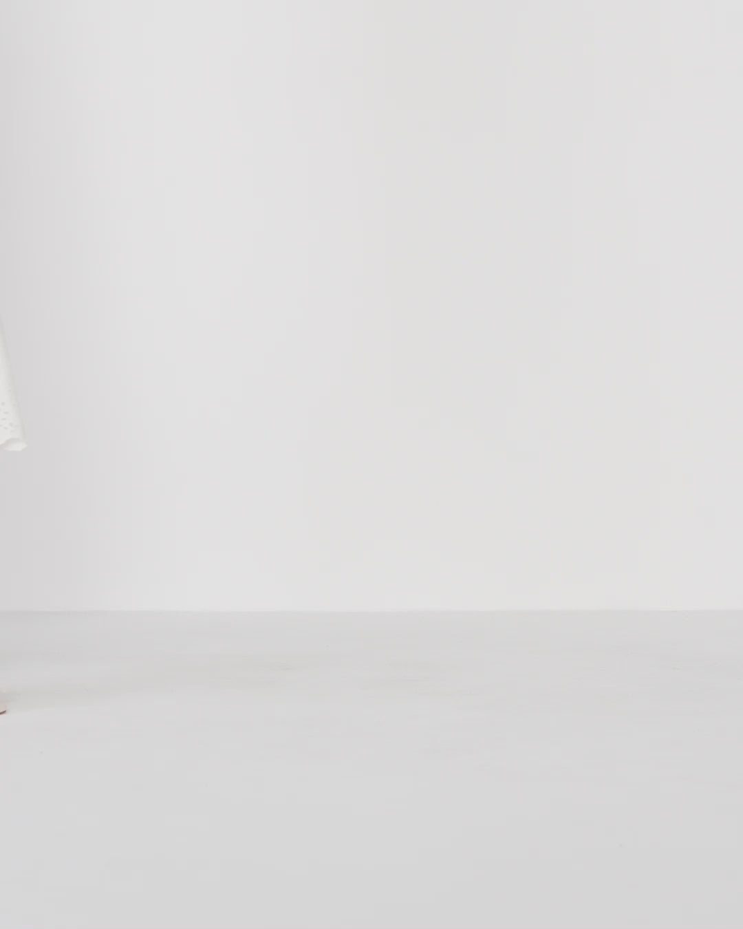 Pleated knot heeled sandal in ivory pearl fabric. Padded footbed with gold stamped logo. Open toe with adjustable buckle ankle strap. 3.5 inch heel. Made with all vegan materials.
