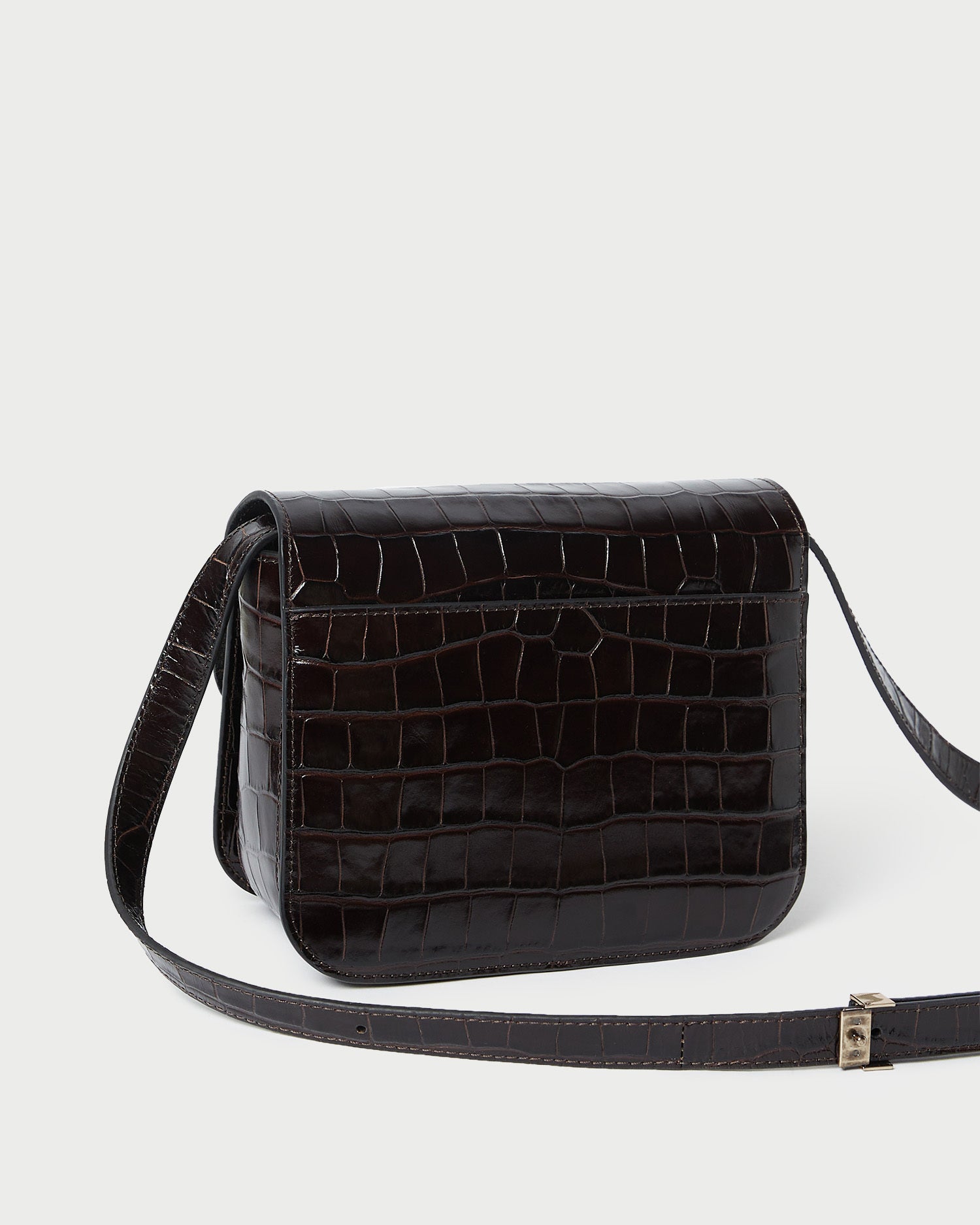 Desi Crocodile Leather Crossbody in ebony crocodile embossed leather