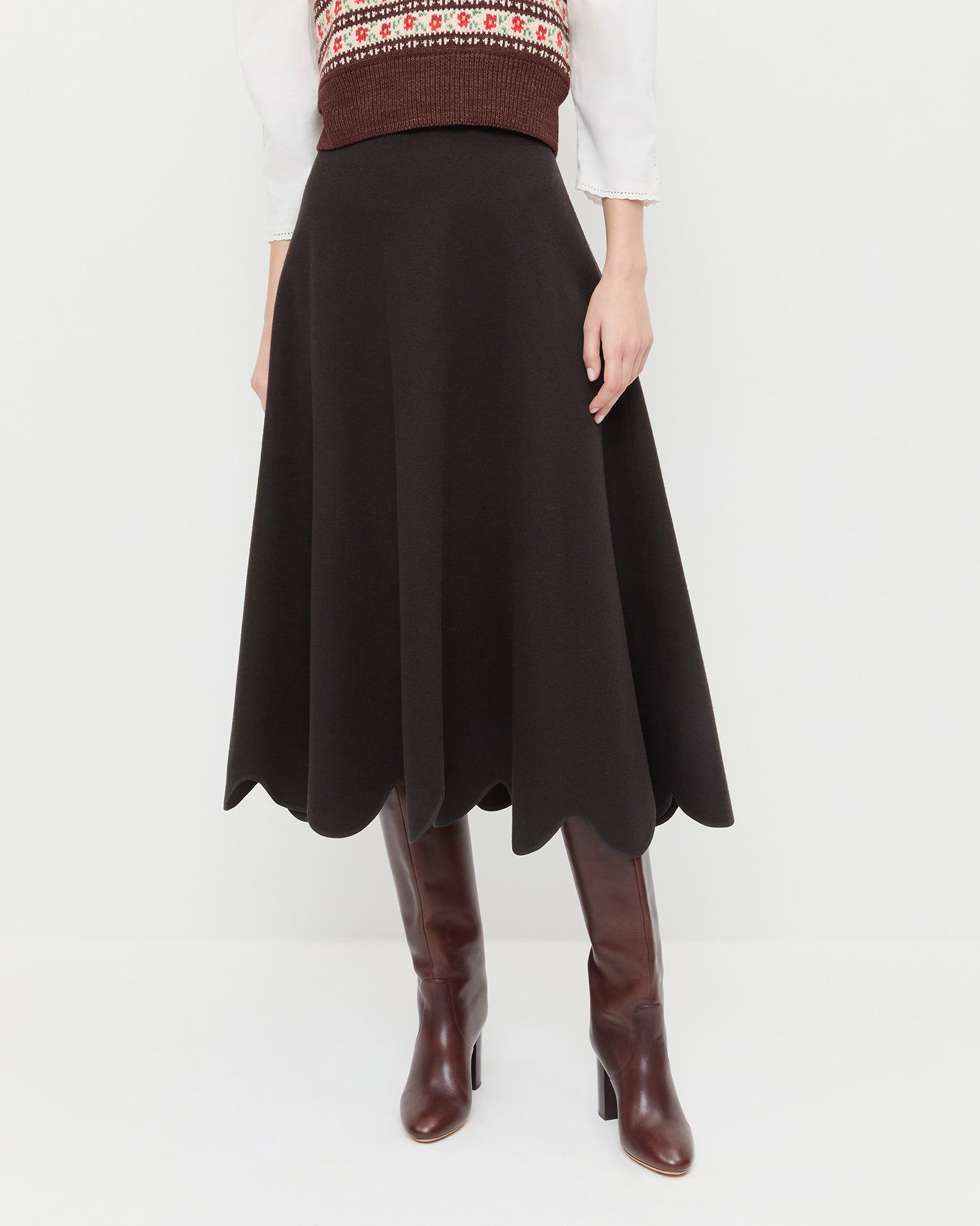 Linnea Skirt in brown wool and Goldy Espresso Leather Tall Boot.