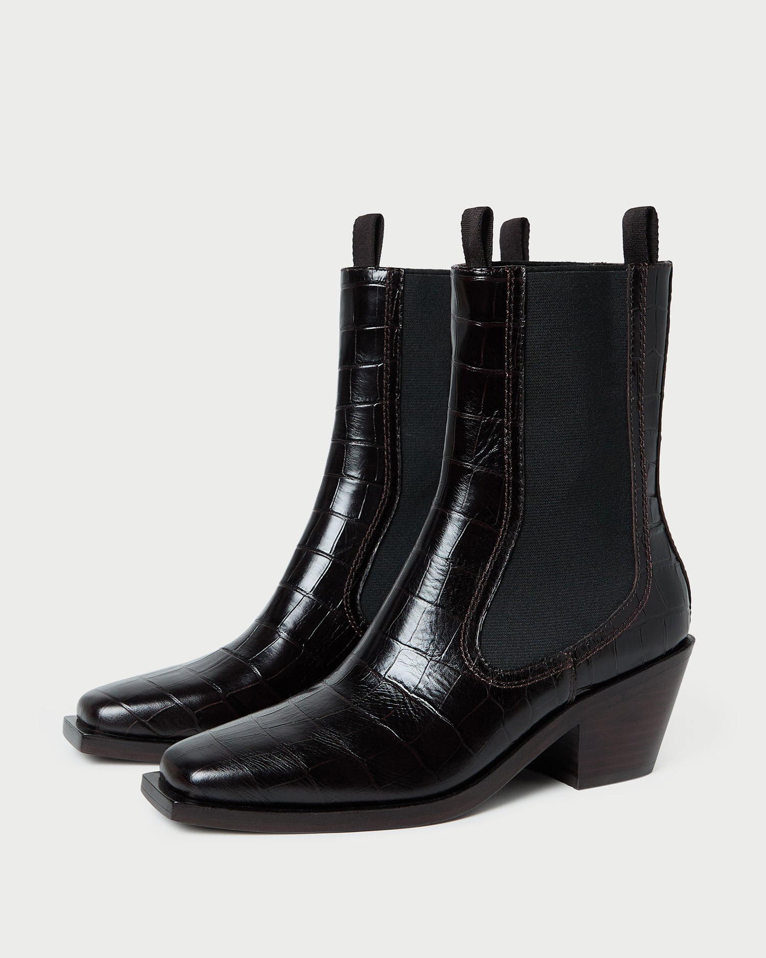 Nat Crocodile Leather Ankle Boot in crocodile black leather.